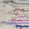 And it is superb for metal thread work. It can be used for cloudy skies, bark, rippled water, textured hillocks and fields, edging brooches…..anything your imagination allows! Can be applied using invisible thread or other fine threads, and either ruched and frilled or flat.