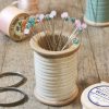 A magnet is built into the spool and catches needles and pins both inside the well at the top and against its sides. This special version of the design contains a beautiful set of special glass-headed pins, in a gift box.