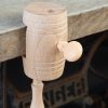 The clamp slots neatly onto the edge of your table and tightens securely with the lower wooden screw. The stem of your hoop slots neatly into the clamp and is fixed at the desired height with the second screw.